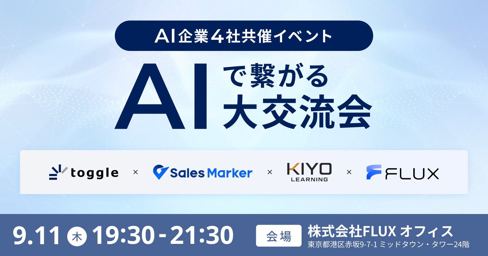AIでつながる大交流会 - toggle・FLUX・Sales Marker・KIYO ラーニング共催!