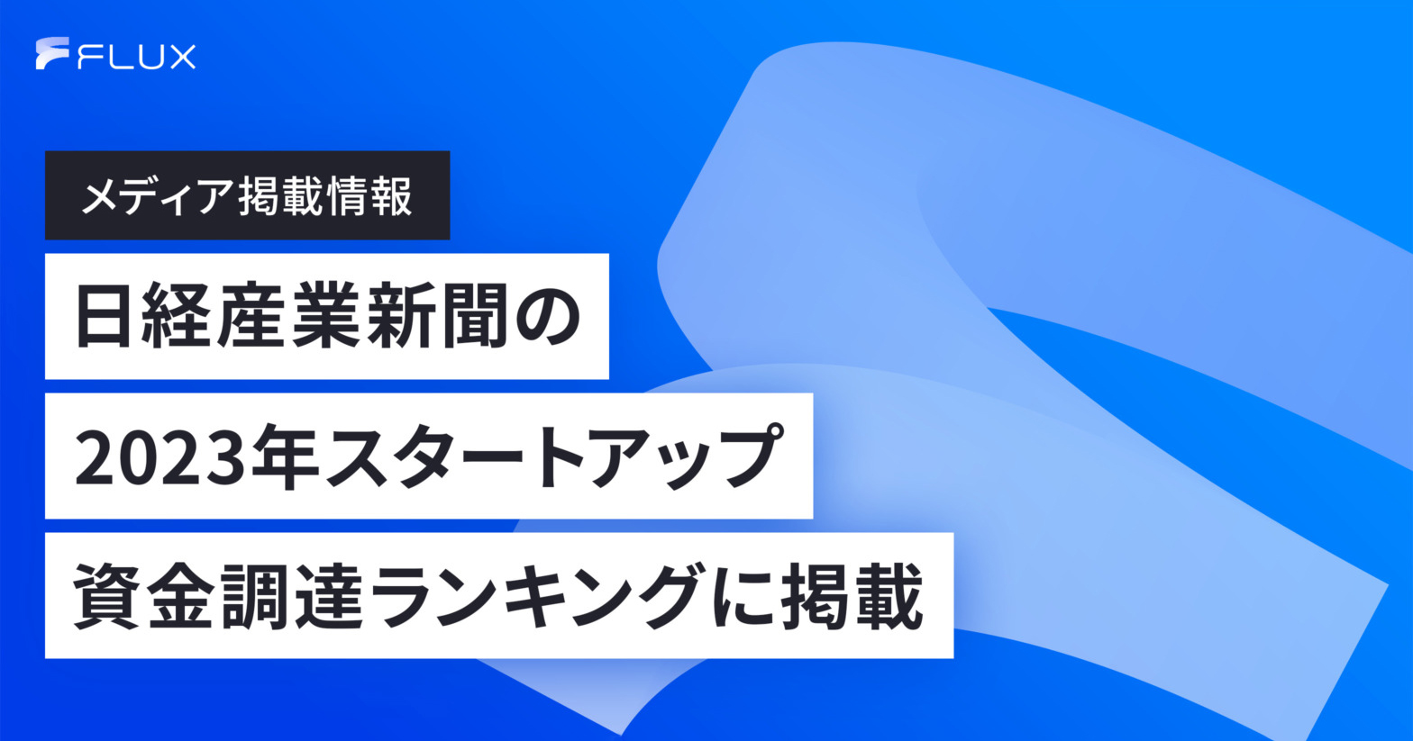 日本経済新聞社などがまとめた2023年のスタートアップの資金調達ランキングに関する内容でFLUXは20位にランクインしています。また、記事内では代表取締役CEO 永井元治のコメントも掲載されています。